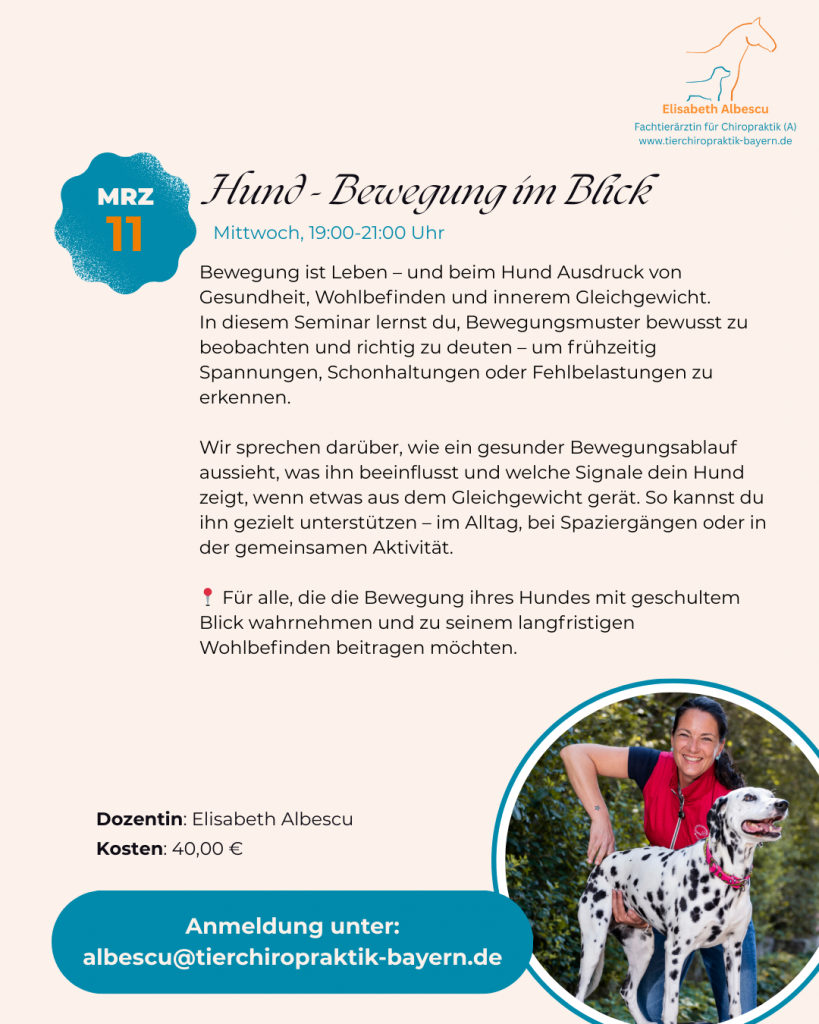 Anfragen bitte per Email unter albescu@tierchiropraktik-bayern.de